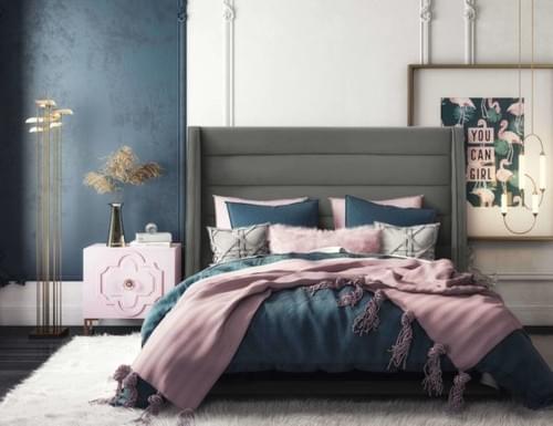 Inspired by modern design, its sharp angles and channel-tufted design make the Ava bed a true statement piece. Its solid wood frame comes upholstered in several soft velvet color options. Available in King, Queen and Twin.