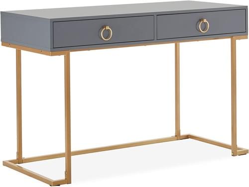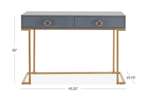 A Clean-lined design with a modern aesthetic, The Geneva desk is an amazing statement piece. The gray tabletop and gold frame complement each other for a subtle glam look.