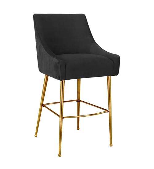 MASON BLACK PLEATED VELVET BAR STOOL - GOLD LEGS