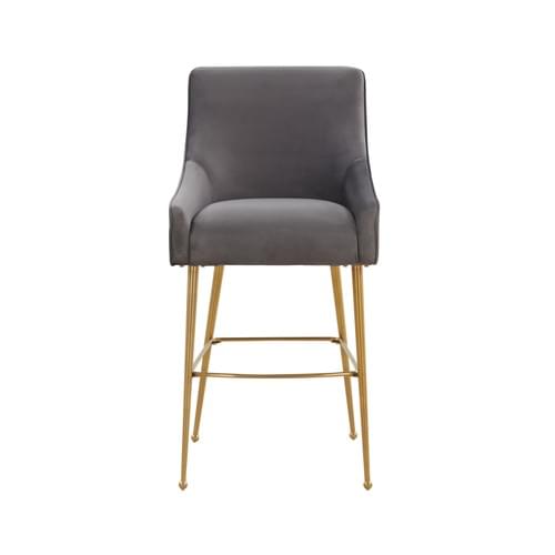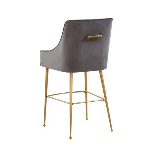 MASON DARK GREY VELVET BAR STOOL - GOLD LEGS
