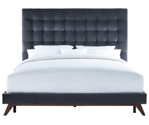 MODERN GREY VELVET BED KING